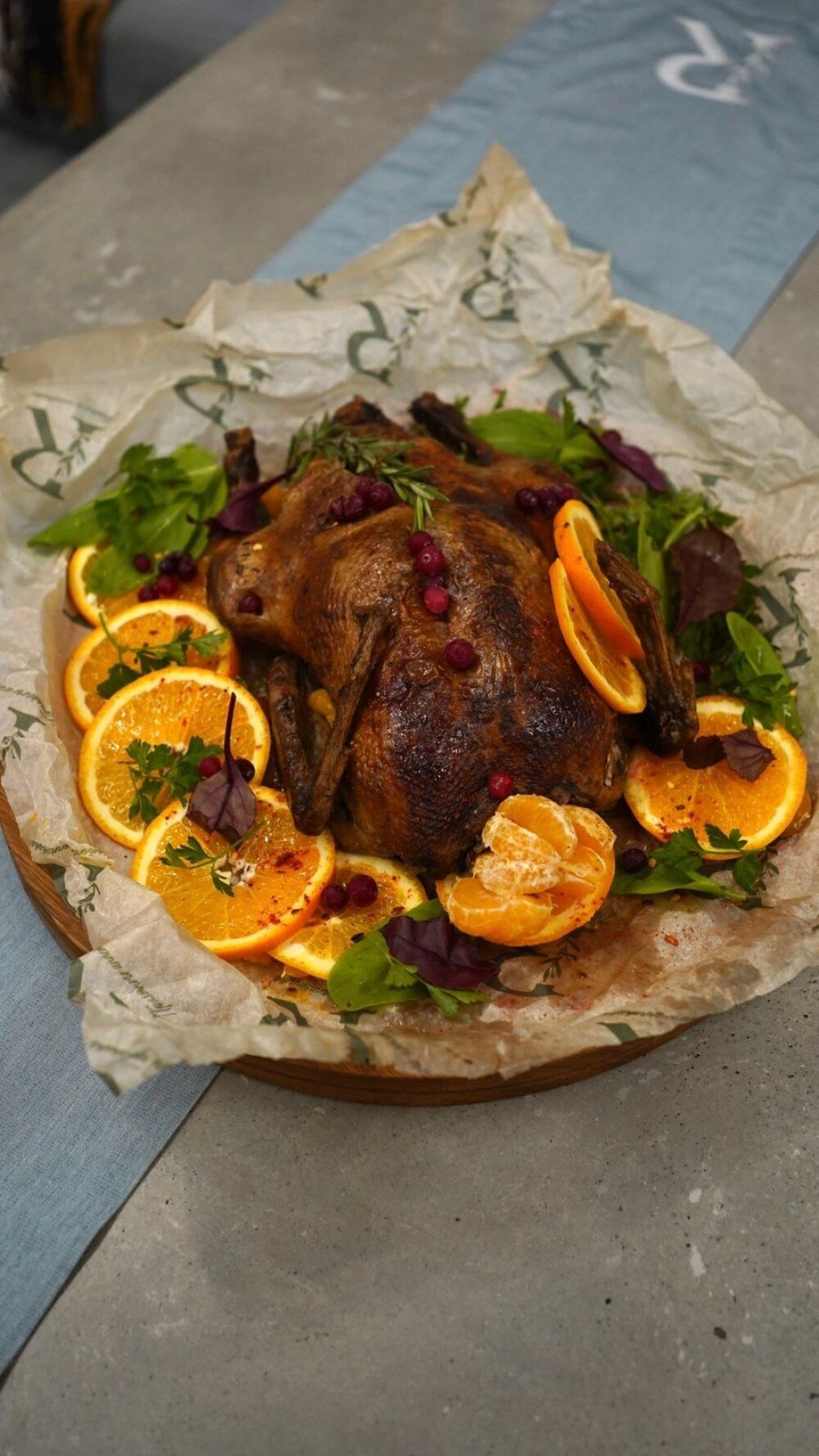 Ростбиф тендерлойн с соусом из лесной клюквы и золотистым бейби-картофелем