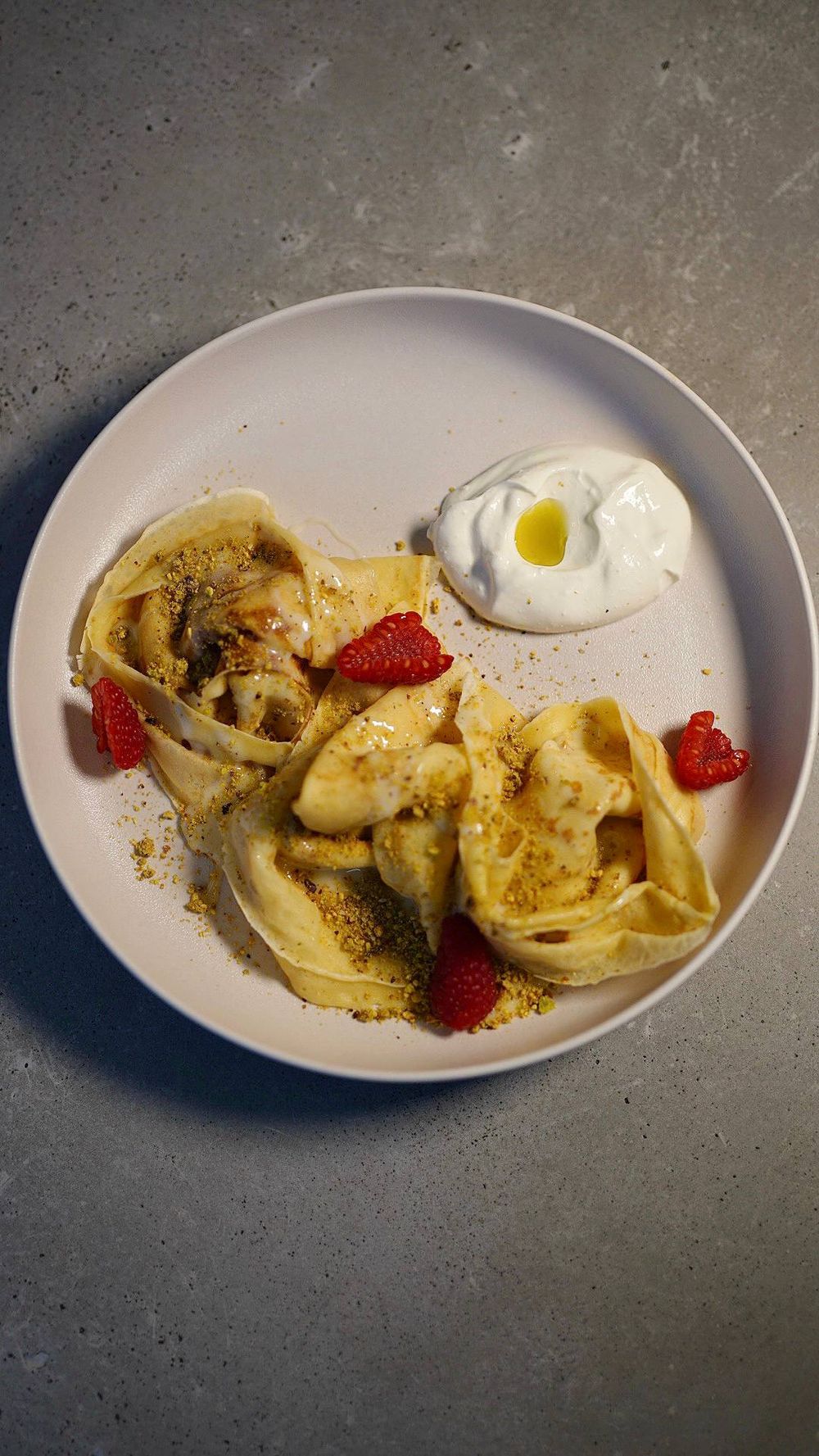 Блины с муссом наполеон и клубникой